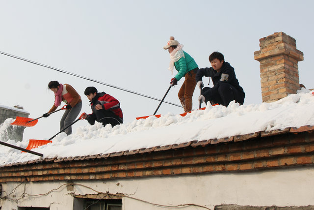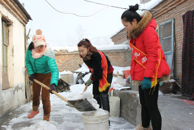 老人家的房頂積雪太多,如果不及時(shí)清理,融雪會(huì )給老人帶來(lái)諸多不便,志愿者們不怕困苦,不顧積雪沾滿(mǎn)衣服,用木梯子登上房頂,用雪鏟歸攏積雪,再運出院外。雖然下午的氣溫較低,但這并不影響他們的熱情和工作效率。志愿者們用一下午的時(shí)間把兩間房頂和院子的積雪全部清理干凈,為老人生活出行帶來(lái)了便利。