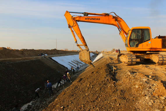 奎屯水庫東泄水渠防滲改建工地勞動(dòng)競賽高潮迭起